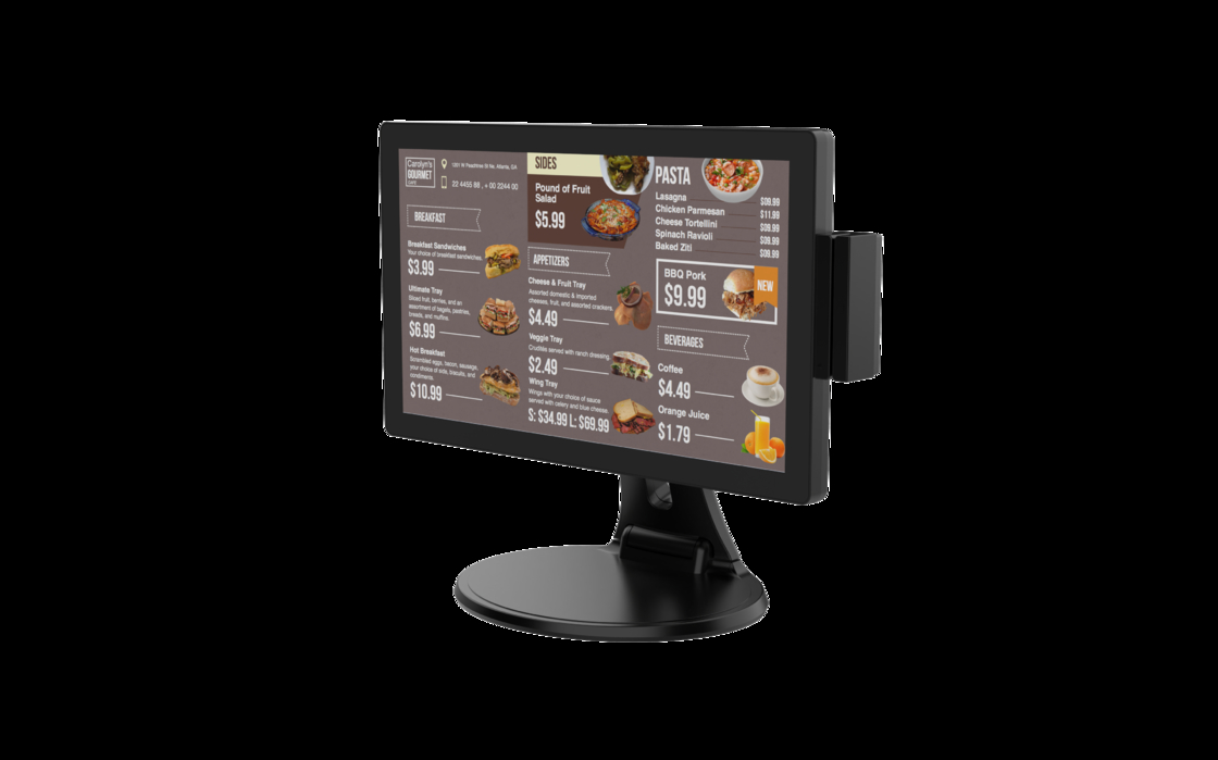 Универсальный дизайн: Монитор, сенсорный экран и компьютер интегрированы в компактное устройство, экономя ценное пространство на прилавке.